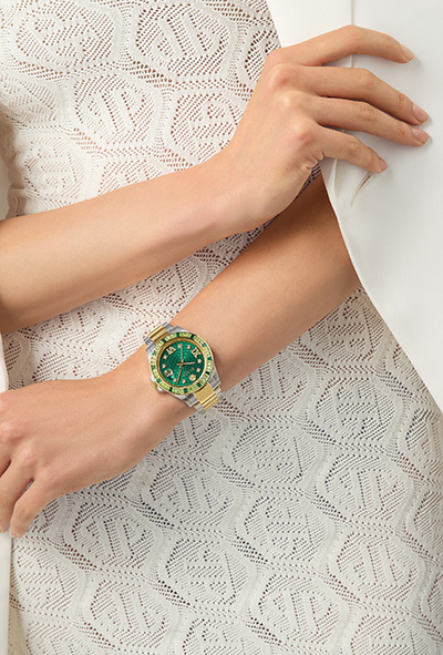 Το Lady Empire είναι ένα αληθινό αριστούργημα κομψότητας σχεδιασμένο να αντανακλά μια εκπληκτική γυναικεία γοητεία. Είναι στολισμένο με λαμπερά κρύσταλλα που συνθέτουν μια ζωντανή παλέτα χρωμάτων, και κοσμείται από εκλεπτυσμένες λεπτομέρειες που εξασφαλίζουν απαράμιλλη τεχνική αρτιότητα.