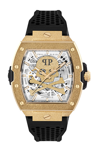 Διαθέτει κάσα 44 mm σε λαμπερό IP κίτρινο χρυσό, ενώ τροφοδοτείται από έναν αυτόματο μηχανισμό στον πυρήνα του, που είναι ορατός μέσω του χαρακτηριστικού σκελετού του καντράν και της διαφανούς πίσω πλευράς της κάσας. Ένα ανθεκτικό μαύρο λουράκι από σιλικόνη ολοκληρώνει αυτό το δυναμικό σχεδιασμό.