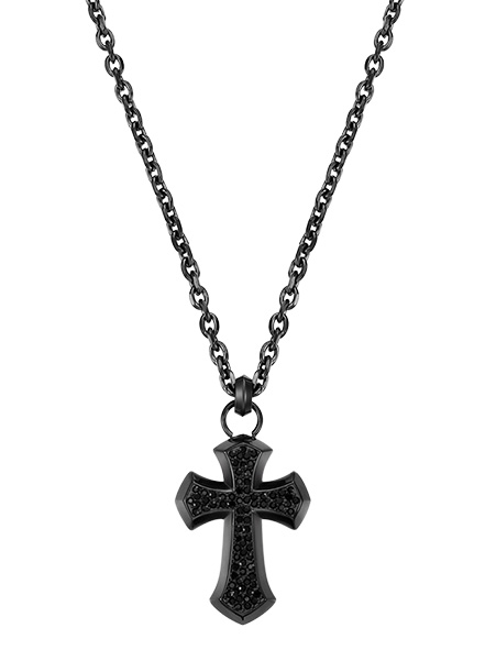 Κολιέ Σταυρός από ανοξείδωτο ατσάλι με μαύρη επιμεταλλωση, Μήκος αλυσίδας: 920mm