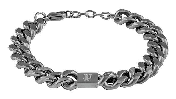 Βραχιόλι από ανοξείδωτο ατσάλι με gunmetal επιμεταλλωση, Μήκος αλυσίδας: 215mm (190mm με επέκταση 25mm)